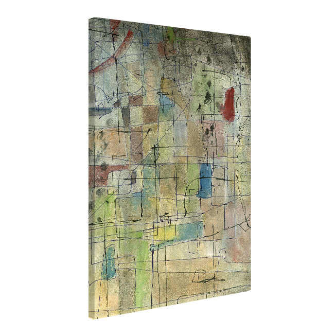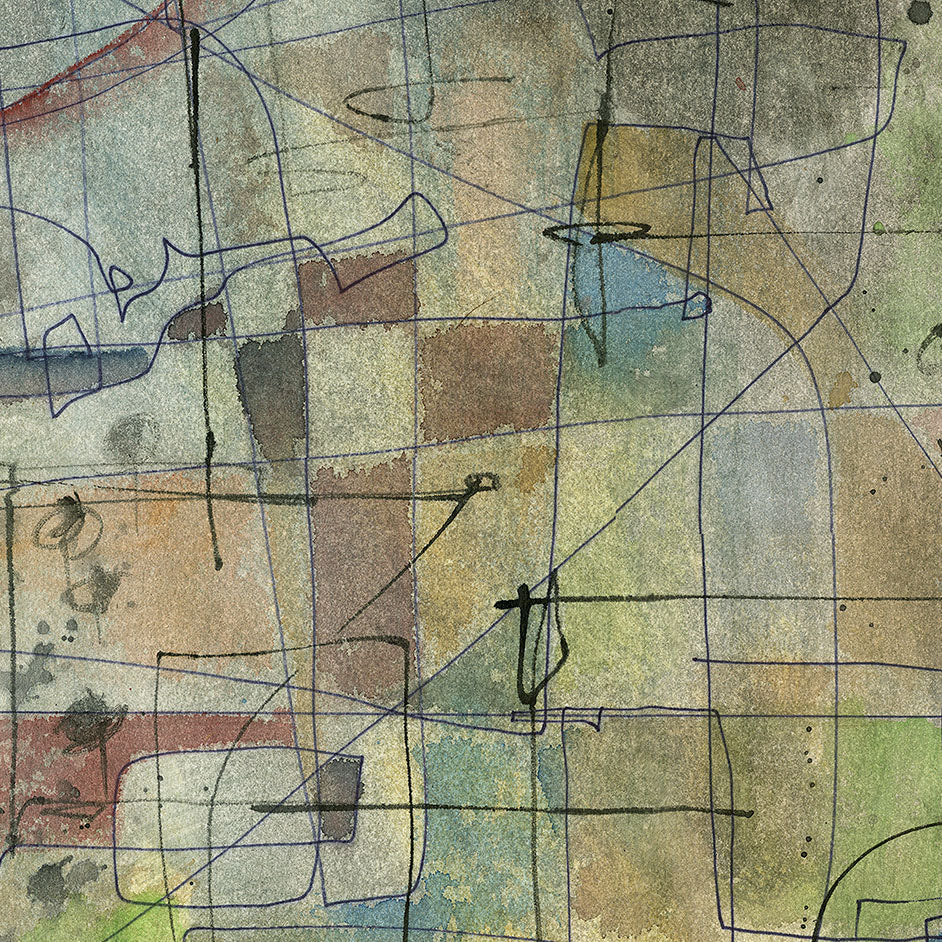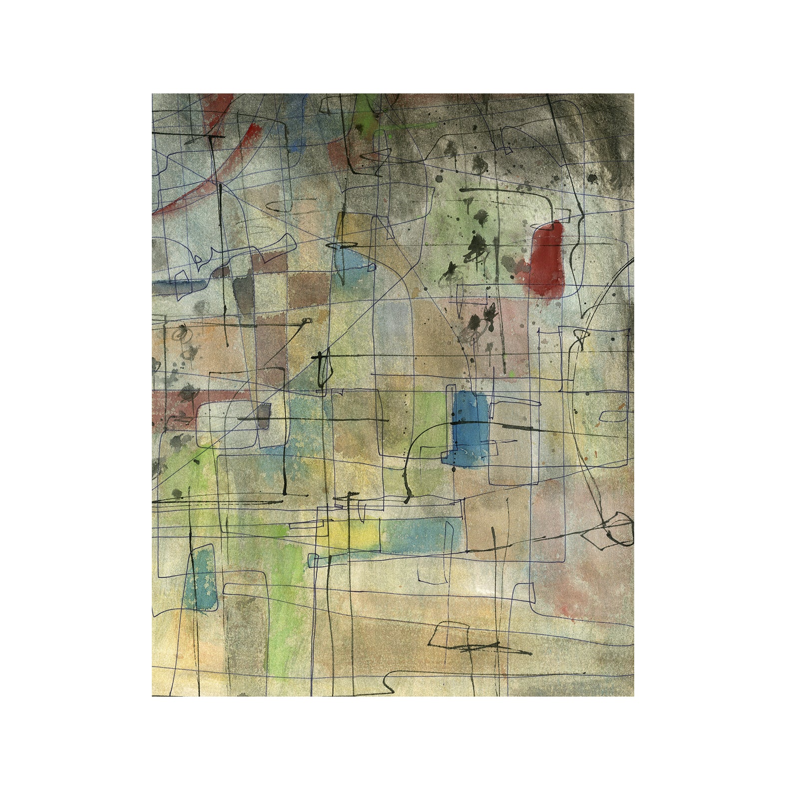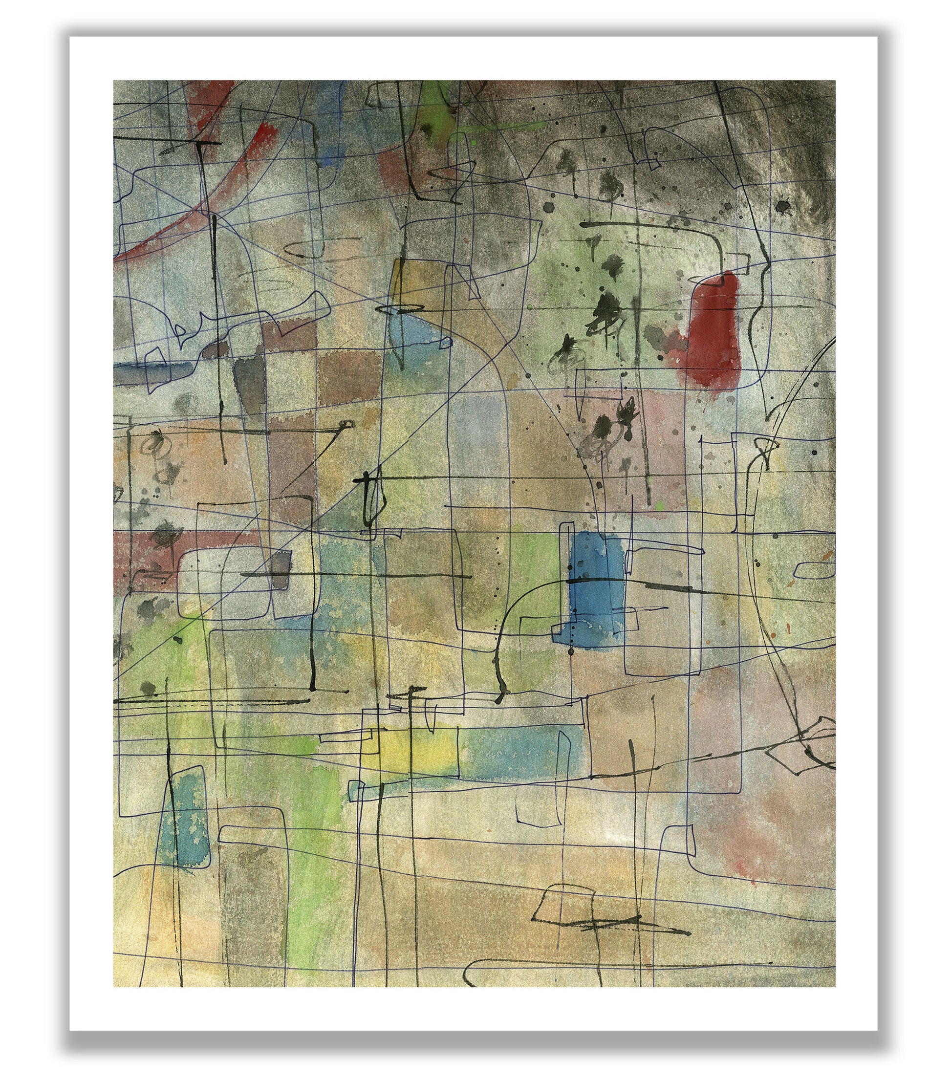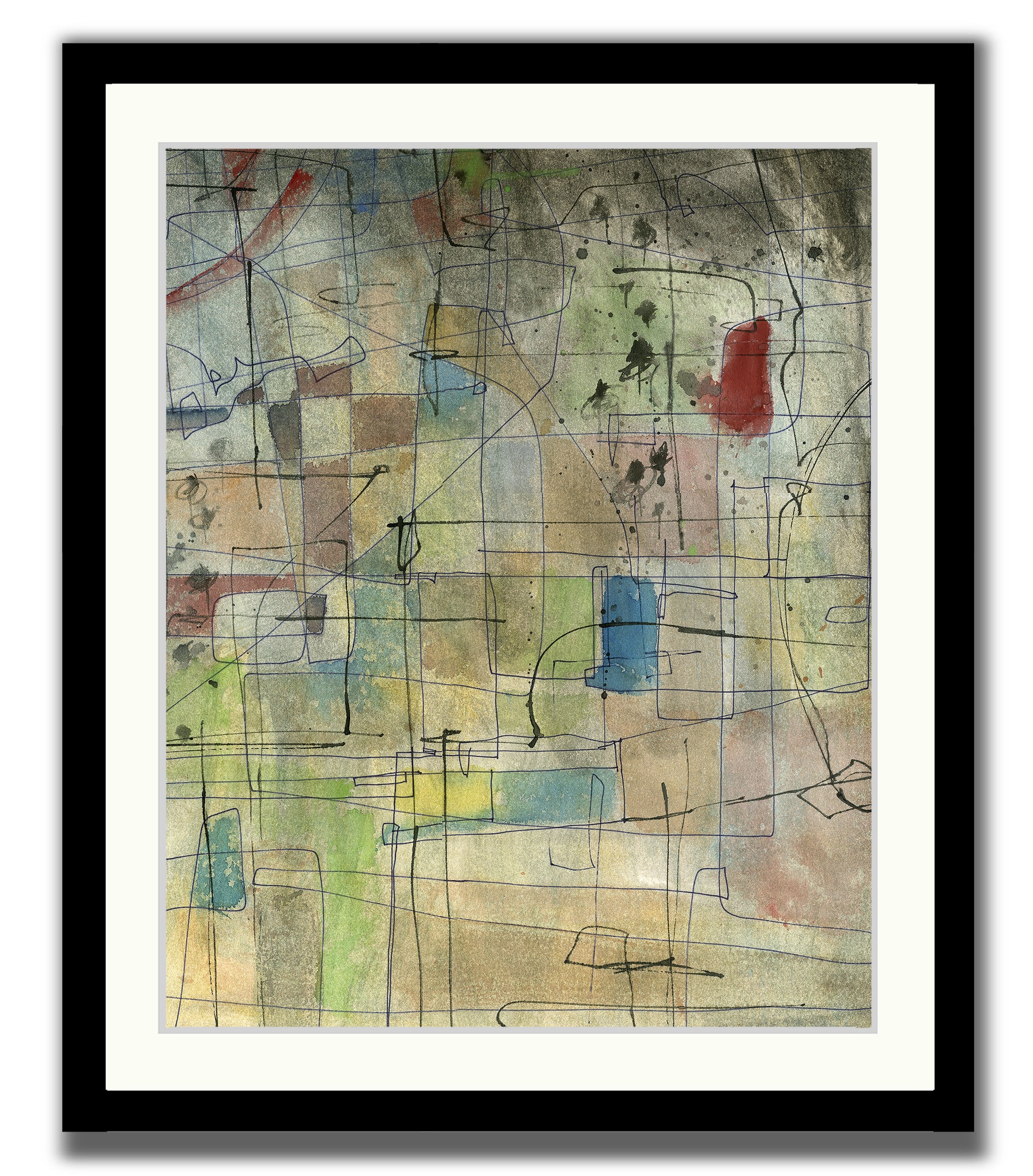 Expressive ink lines form an urban layout over oilo wash and charcoal. Printed on fine art paper and canvas, with each print personally signed. A contemporary wooden frame paired with non-reflective, shatterproof acrylic lends the piece a refined, museum-quality presentation. Made in USA.