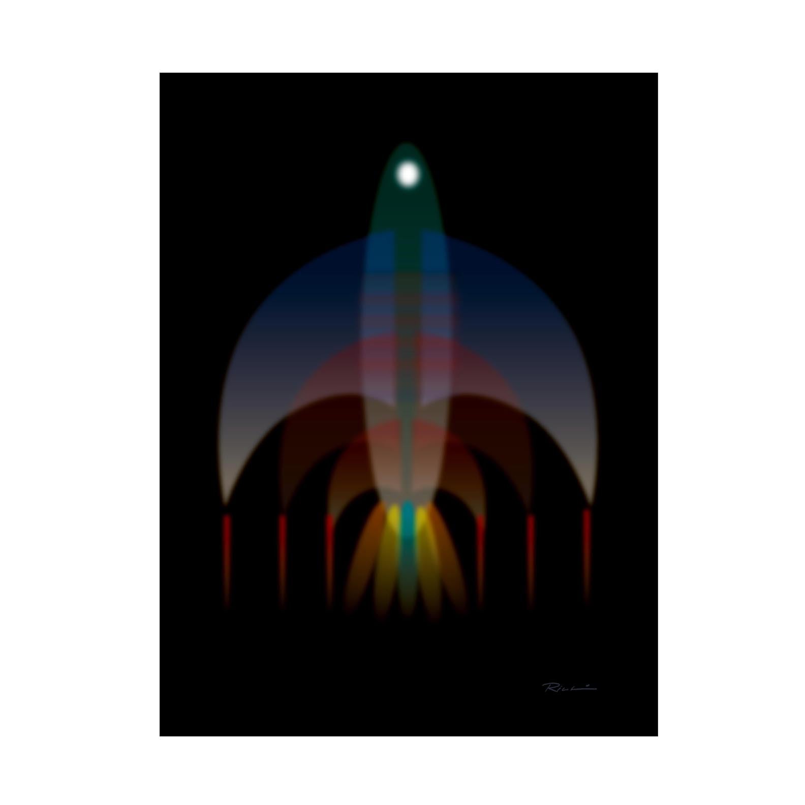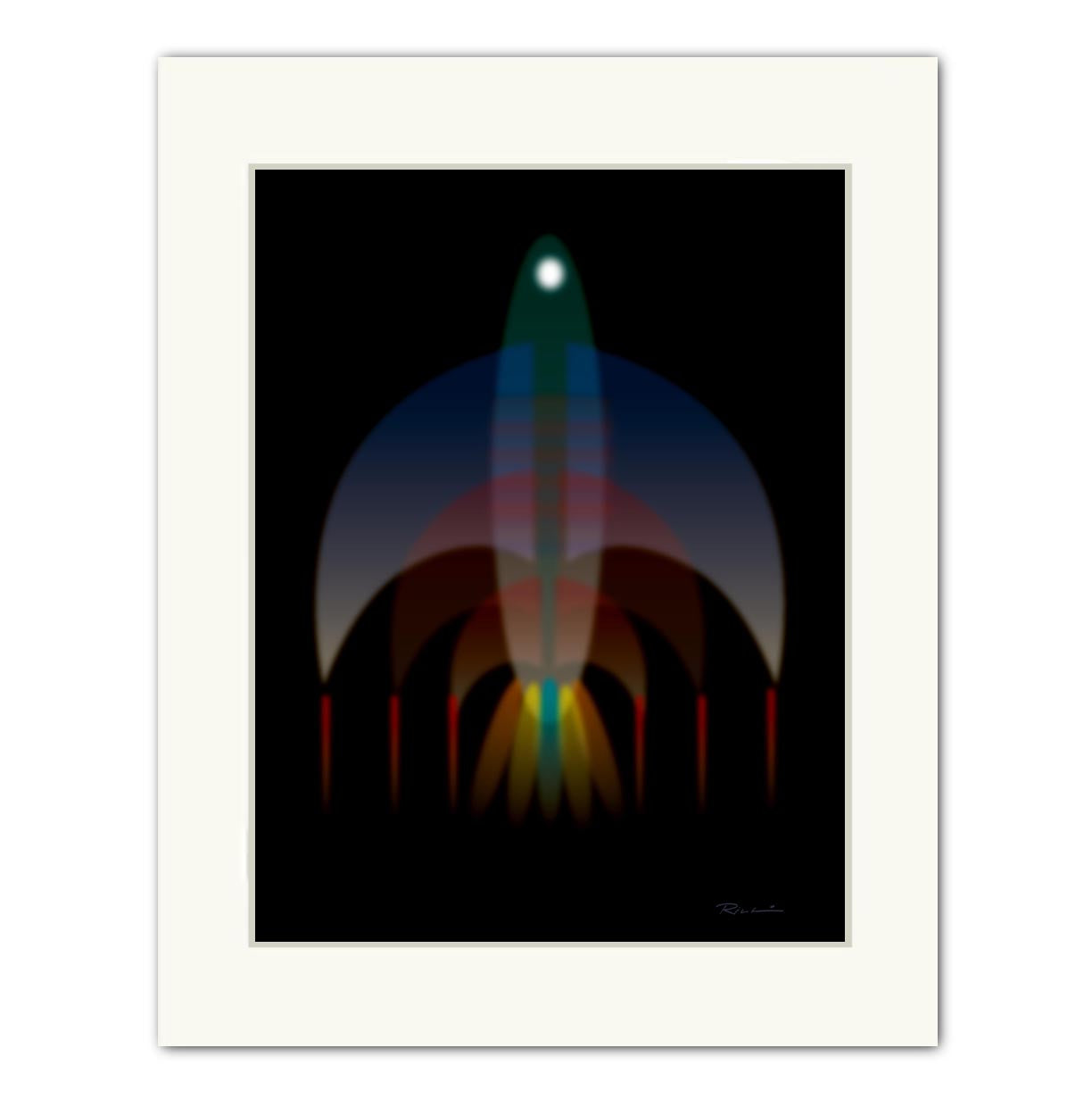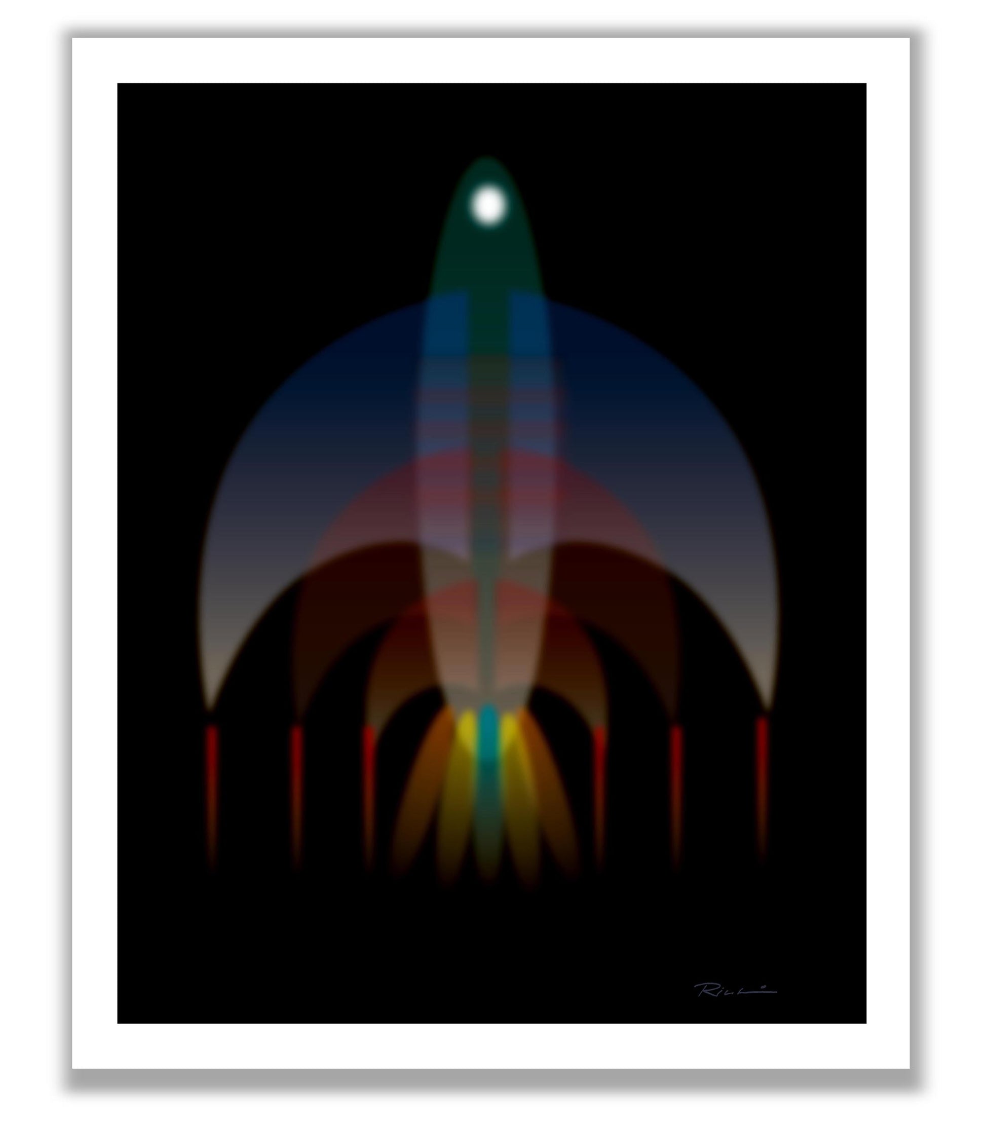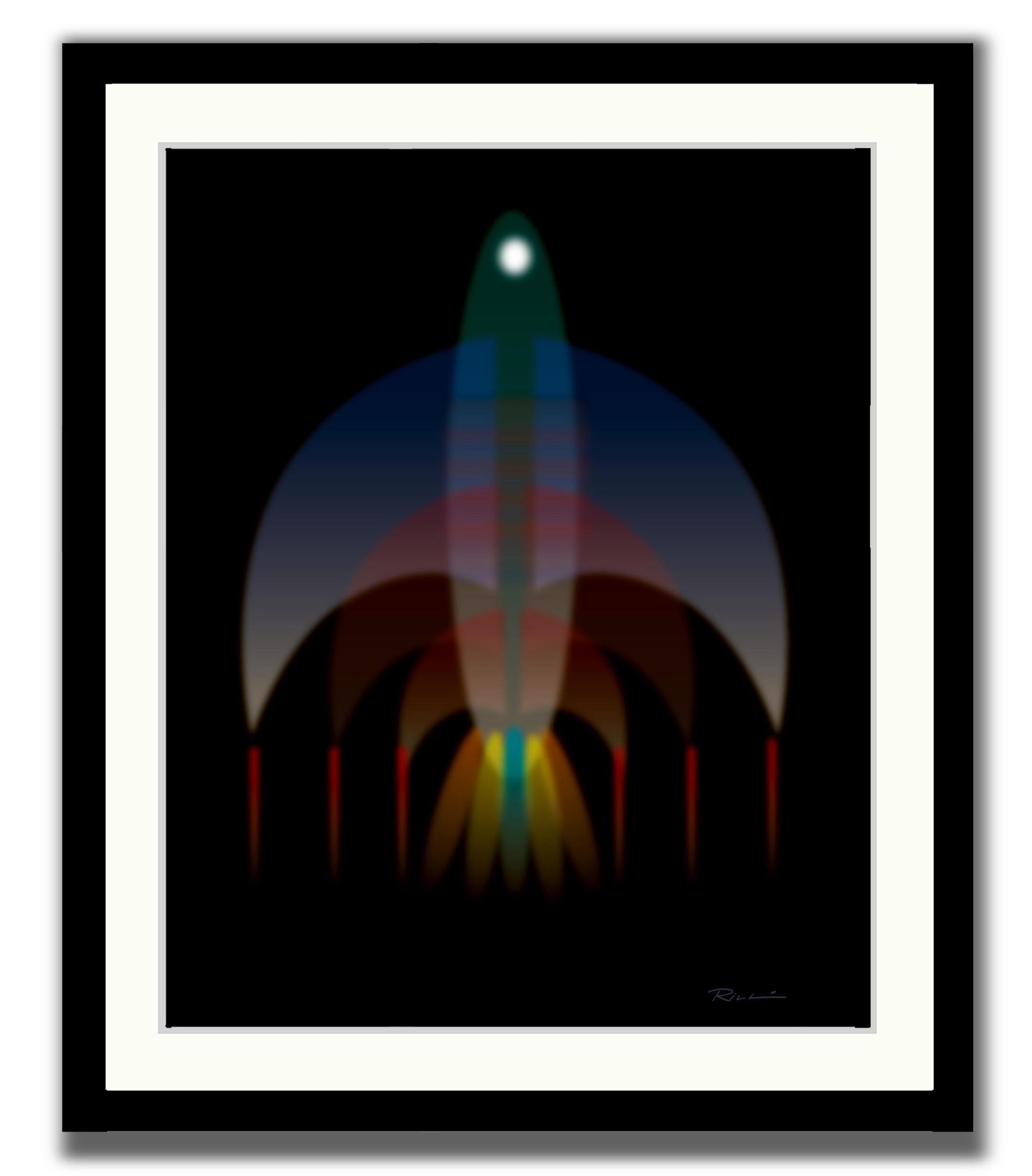 The composition suggests the outline of a ship, but it's rendered in ghostly abstraction, dissolving into the background. The forms are geometric yet softened, made from layered blocks of grays, charcoal, muted blues, and earthy browns, creating a sense of structure that’s been worn by time. Printed on fine art paper or canvas and each print is personally hand signed. A contemporary wooden frame paired with non-reflective, shatterproof acrylic lends the piece a refined, museum-quality presentation. Made in USA.