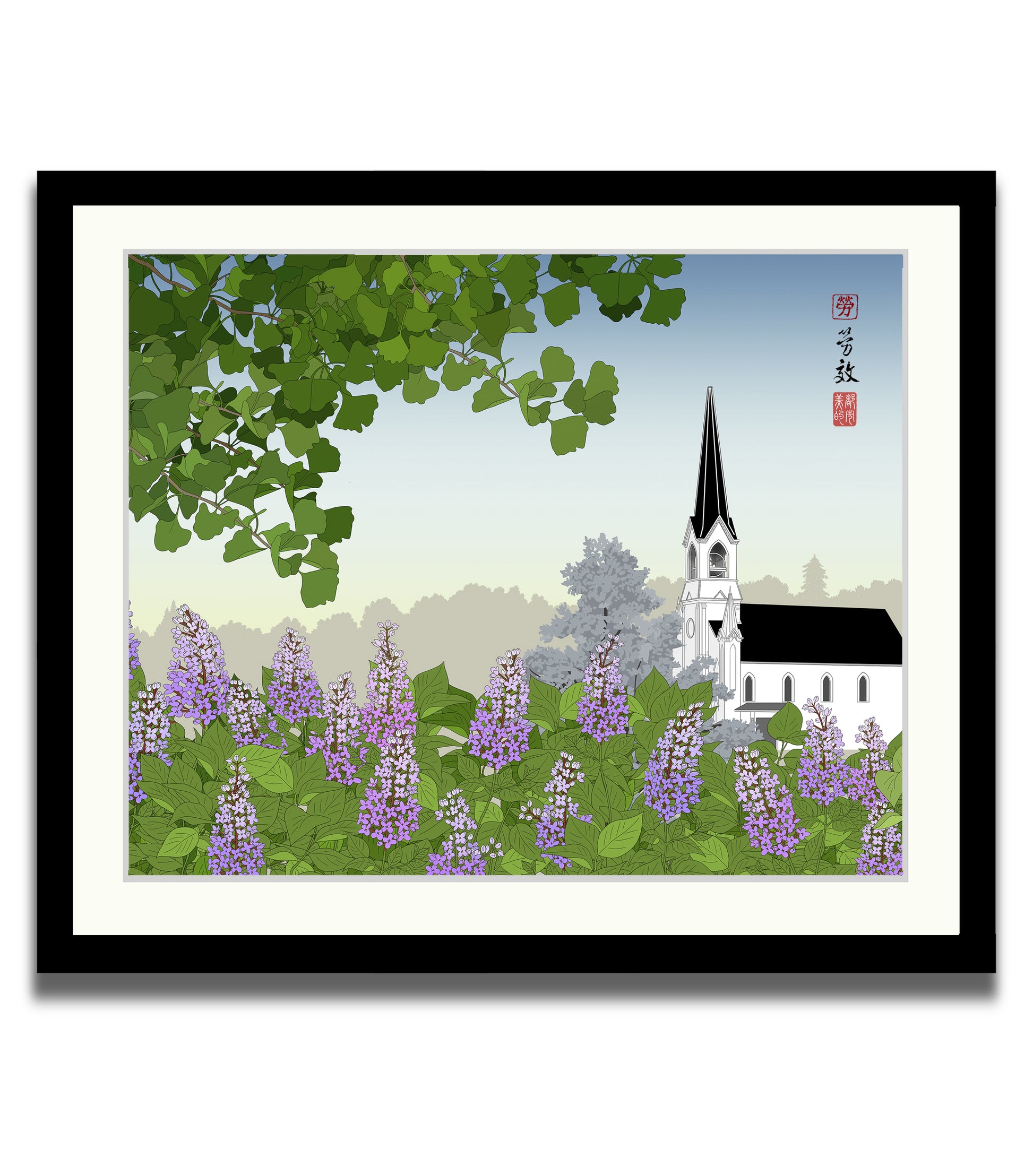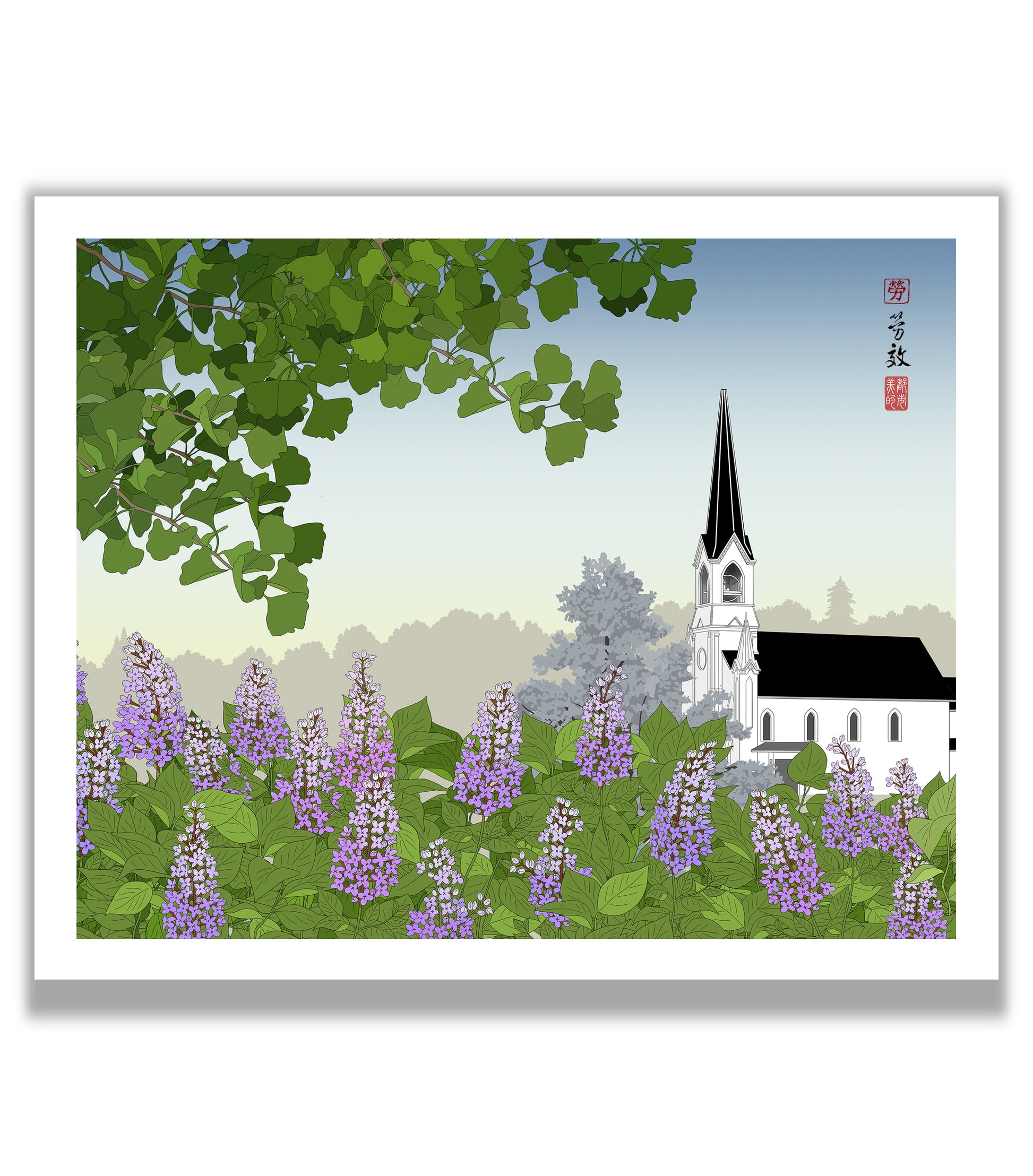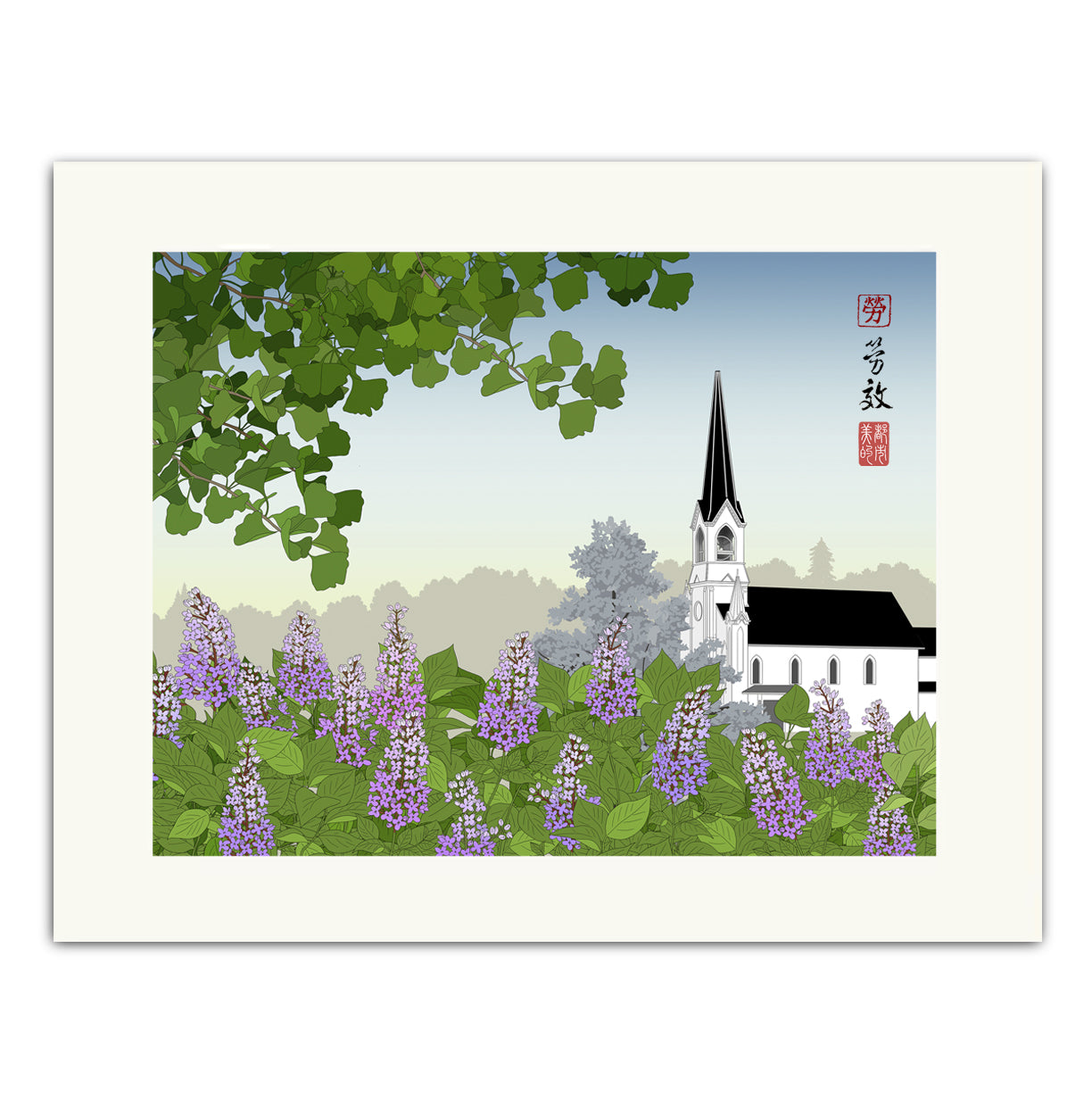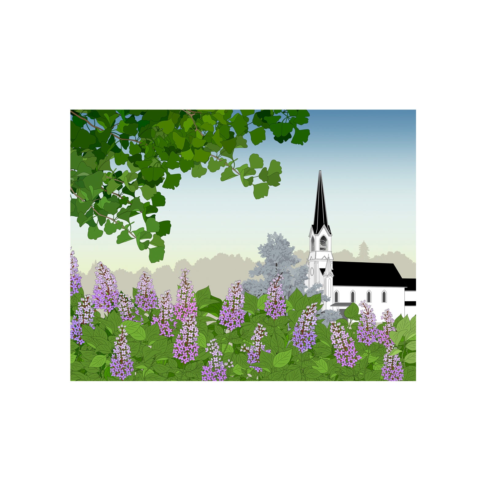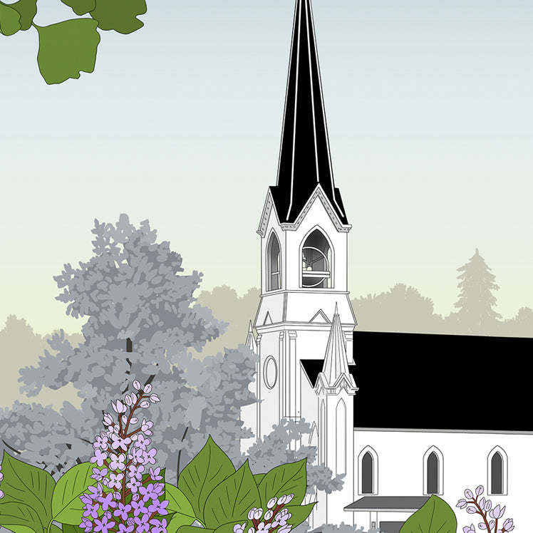 Maple Street Chapel is a local landmark with a tall spire that is seen from much of Lombard. Viewing the spire from the 'crown jewel of the village,' Lilacia Park, is particularly meaningful to the community.