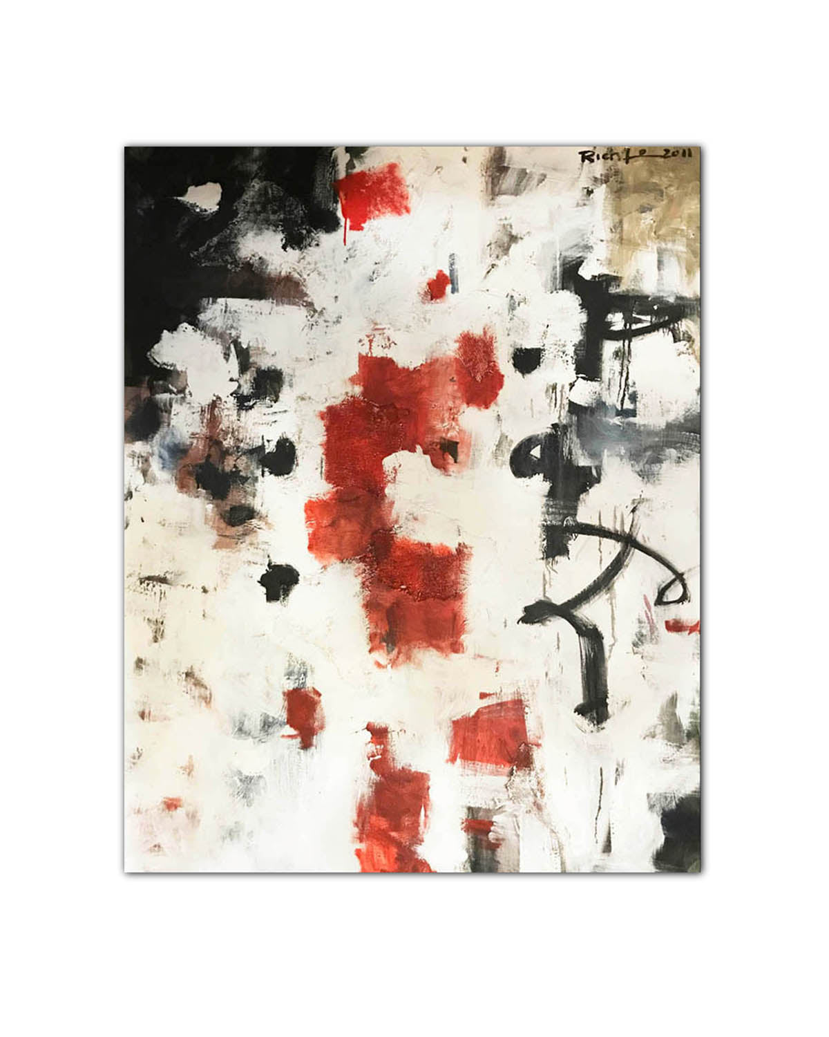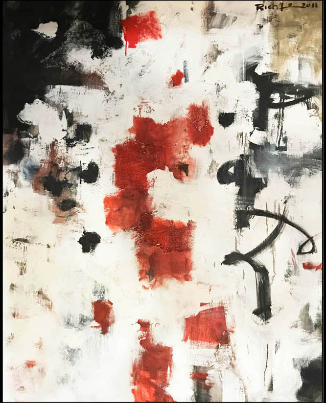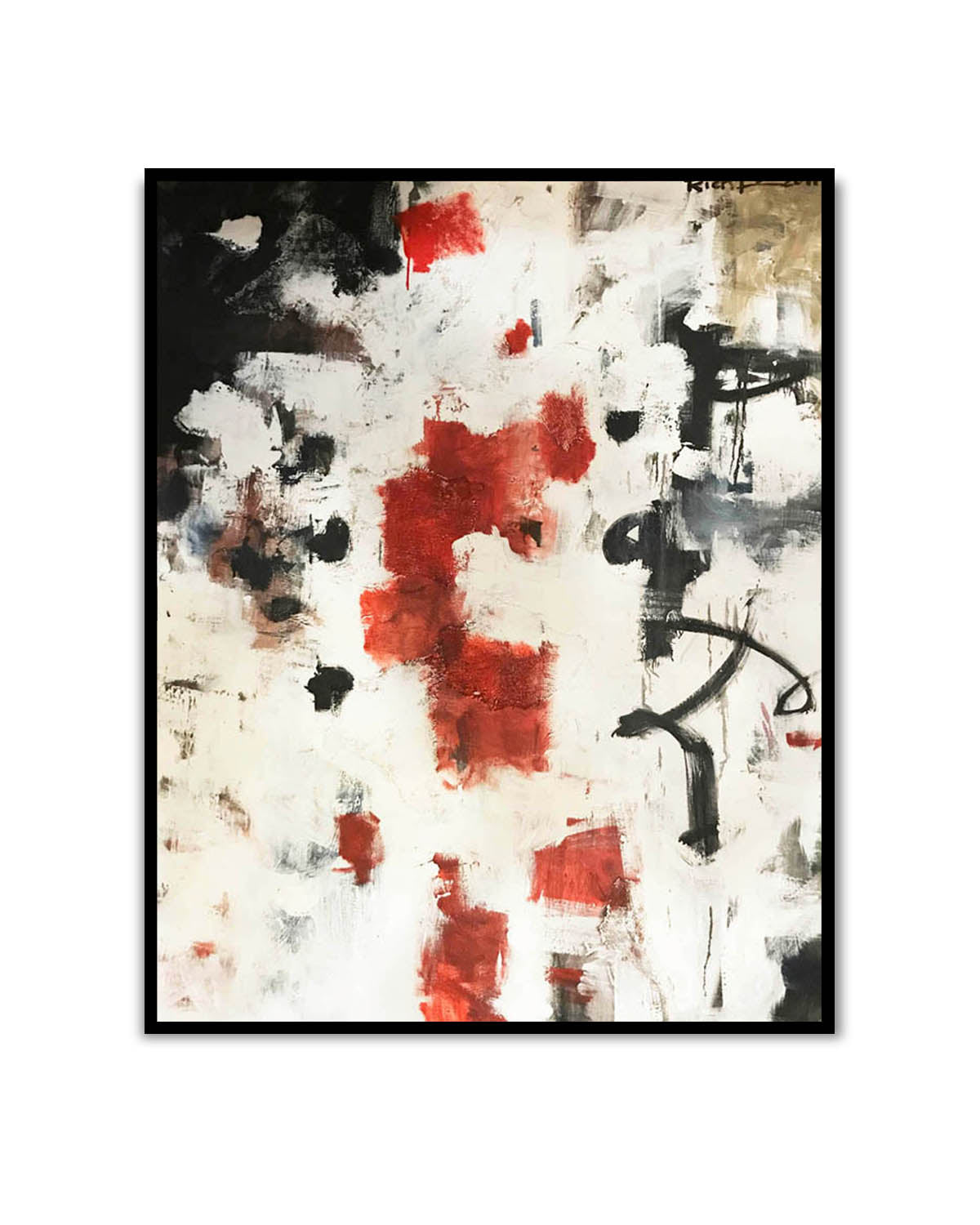 This powerful abstract expressionist oil painting commands attention through its dramatic interplay of raw emotion and gestural intensity.