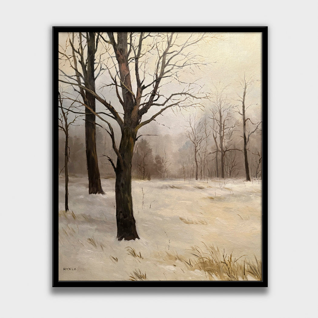 Winter Silent is a honest, observational approach to nature with no dramatic idealization. However, it has subtle Romantic qualities in the misty, atmospheric background and the contemplative, somewhat melancholic mood of the bare winter landscape.